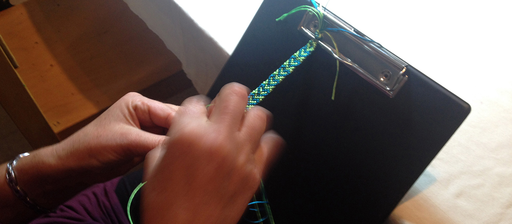 Ein Freundschaftsbändchen nimmt Gestalt an.