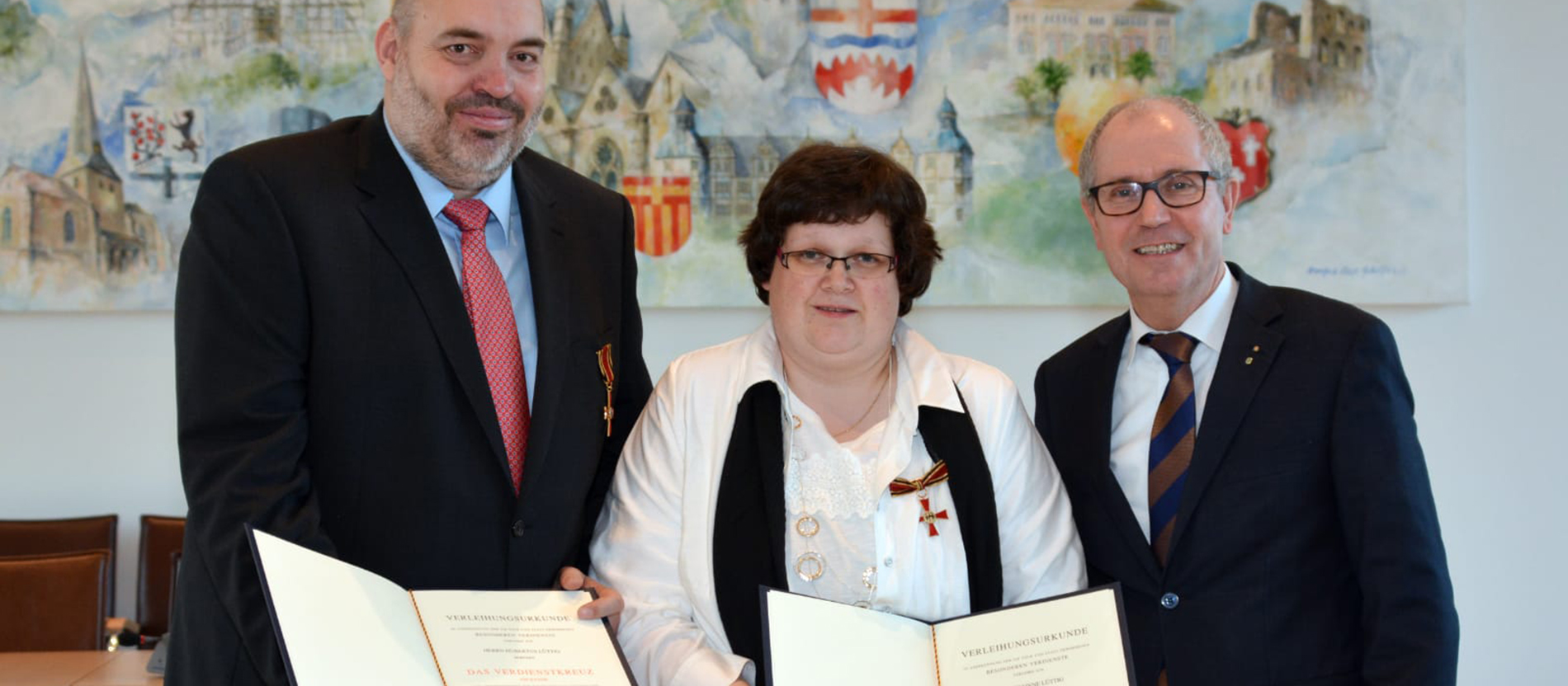 Die Lüttigs bei der Verleihung des Bundesverdienstkreuzes. Neben ihnen steht Landrat Manfred Müller.