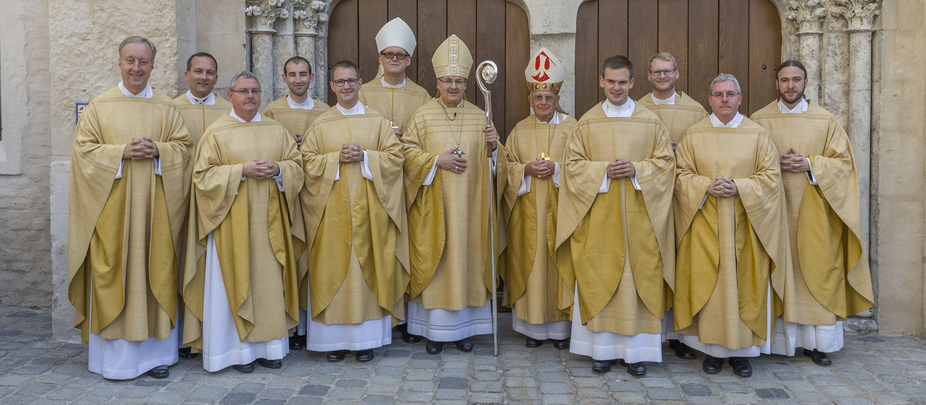 Zur Weihe traten die sieben Kandidaten einzeln vor den Regensburger Oberhirten und bekundeten ihre innere Bereitschaft zum Dienst an der Kirche in Einheit mit dem Bischof. Der Leiter des Priesterseminars, Regens Martin Priller, erklärte, dass das Volk und die Verantwortlichen befragt und die Kandidaten für würdig befunden wurden. Nach der Weihe durch die Handauflegung wurden die Männer mit Stola und Messgewand bekleidet und ihre Hände gesalbt.